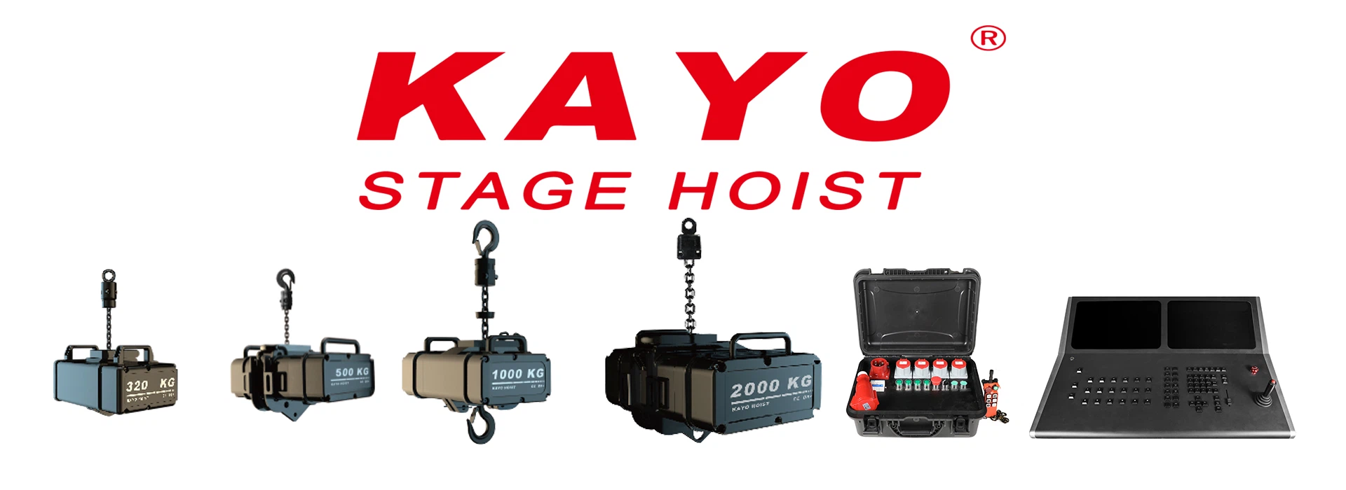 KAYO is a professional manufacturer specializing in entertainment stage hoists, adhering to German BGV standards and holding a CE certificate. Our high-quality products are complemented by an intelligent stage control system. KAYO: provides safe and stable stage lifting and rigging products for various events, concerts, theaters, TV stations, and sports games.
